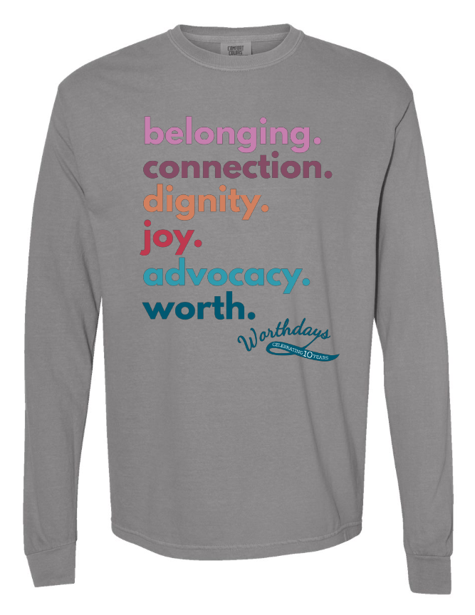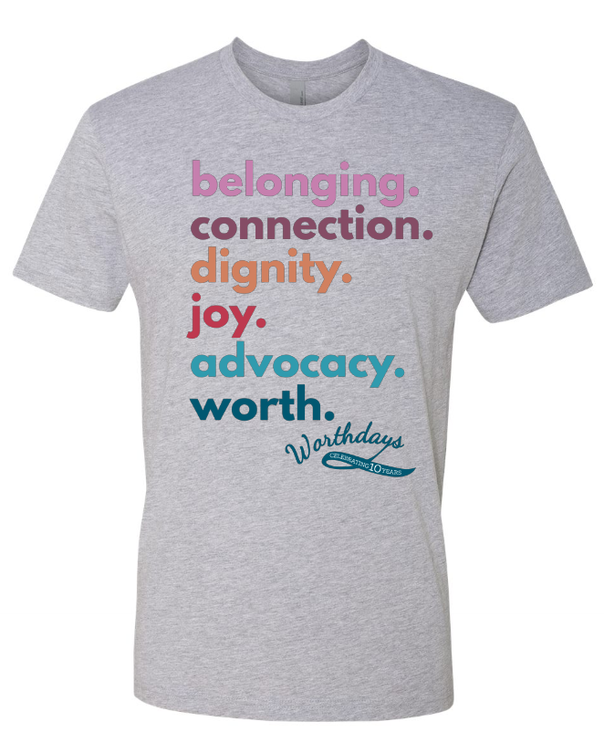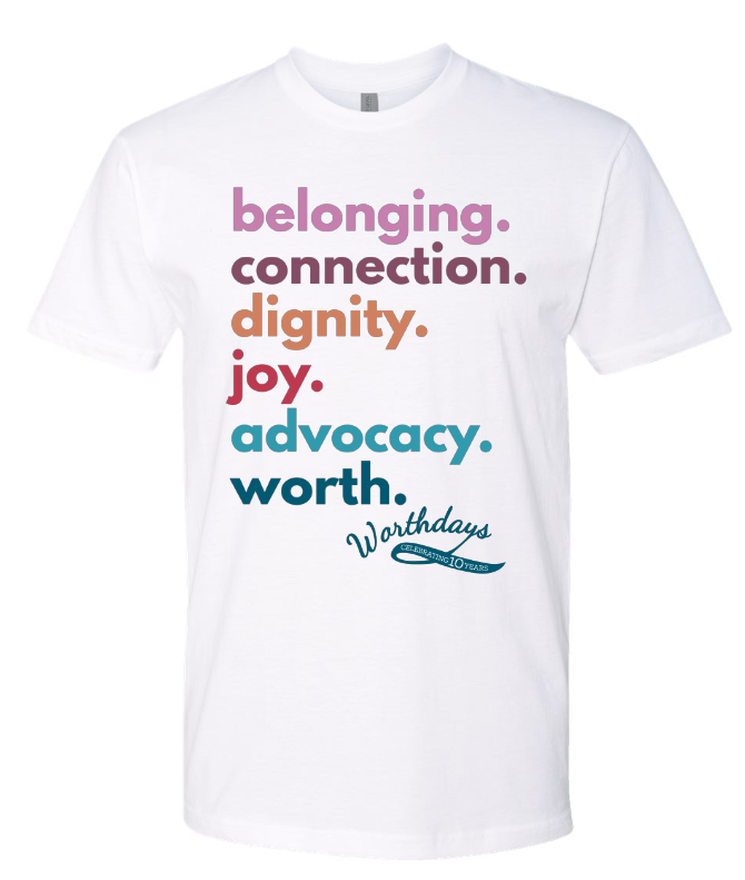 This design was provided by Worthdays for us to make for this upcoming holiday season. We wanted to give other Joy Makers an opportunity to buy one of these shirts, and profits will go directly to Worthdays!